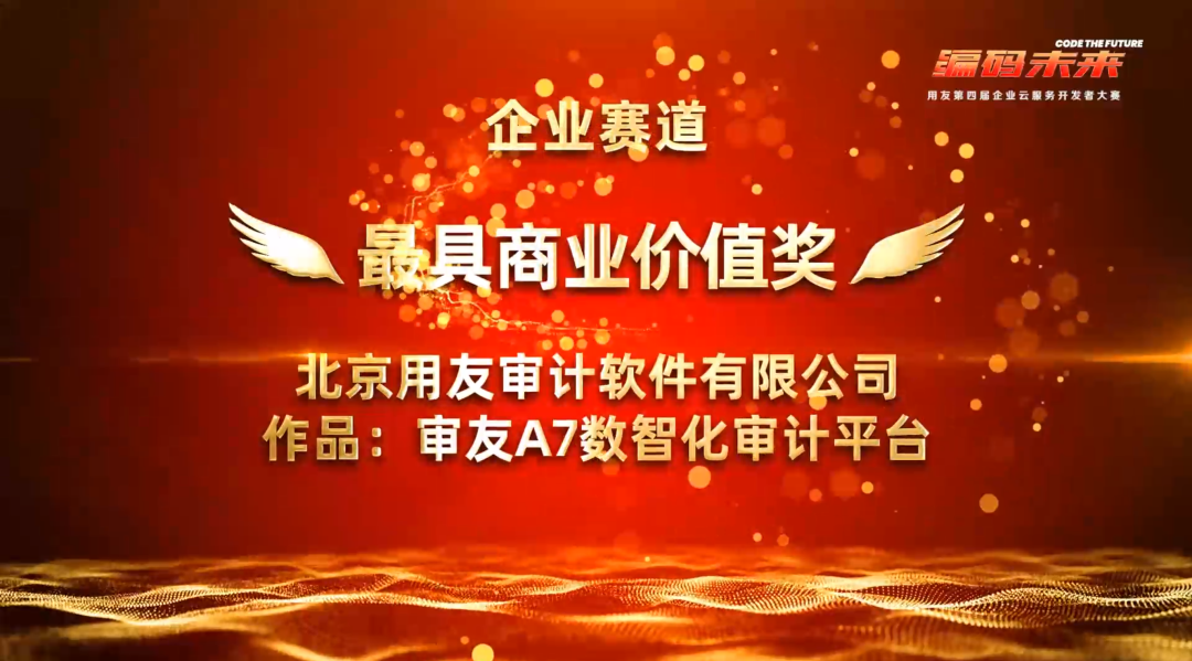 編碼未來—用友第四屆企業云服務開發者大賽作為一年一度的開發者盛事,面向企業服務領域開發者,立足企業實際業務需求,基于用友 BIP、用友低代碼開發平臺YonBuilder,推動面向企業服務領域的SaaS快速開發與創新成果轉化,共計399支參賽團隊參與了本次大賽。12月9日,決賽結果震撼公布,我司提交的參賽作品“審友A7數智化審計平臺”榮獲企業賽道—最具商業價值獎。