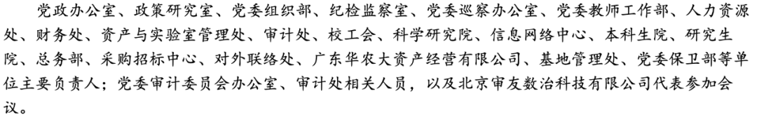 華南農(nóng)大審計(jì)處領(lǐng)導(dǎo)以實(shí)地研討為基礎(chǔ),赴北京、天津、山東等地區(qū)的高校開(kāi)展內(nèi)部審計(jì)轉(zhuǎn)型升級(jí)經(jīng)驗(yàn)調(diào)研。調(diào)研結(jié)束后,華南農(nóng)大于4月27日召開(kāi)審計(jì)信息化建設(shè)動(dòng)員會(huì),本次動(dòng)員會(huì)受到華南農(nóng)大校黨委及校領(lǐng)導(dǎo)的高度重視。