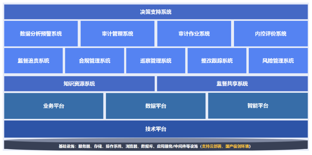 作為國內(nèi)審計信息化領域的深耕者,審友數(shù)治貼合渤化集團需求,響應天津市國資委智慧審計監(jiān)督平臺建設要求,定制多位一體風控平臺。該平臺采用“1個低代碼平臺+3個業(yè)務支撐平臺+12個系統(tǒng)場景”先進架構(gòu),秉持“數(shù)據(jù)驅(qū)動、業(yè)務協(xié)同、閉環(huán)管控、智能賦能”理念,整合多年來的核心技術(shù)與實踐經(jīng)驗,搭建全鏈條一體化管控體系,覆蓋多項核心系統(tǒng)模塊。